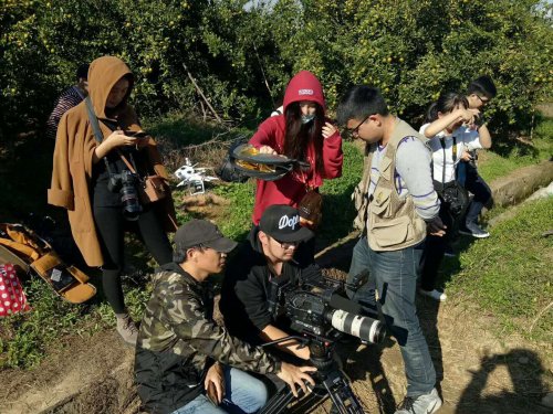 《匠心》栏目组导演艾文在广东当地桔林指导现场拍摄